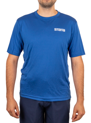 Part of Stata's new Essential line, this royal blue performance shirt has a white Stata logo on the front left chest and the Stata icon on the back.