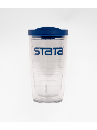 Insulated Tervis® tumbler with the Stata logo and blue lid.
