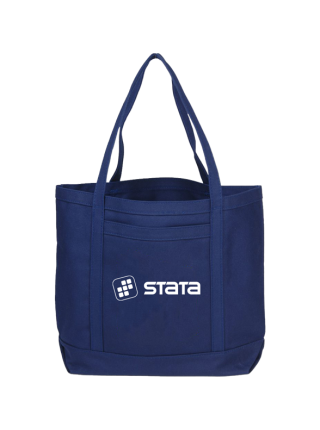 This high-quality navy canvas tote is durable enough to carry most items, including your laptop and Stata Press books. Use the outer pocket featuring our Stata logo, to keep smaller items safe like your phone and wallet.